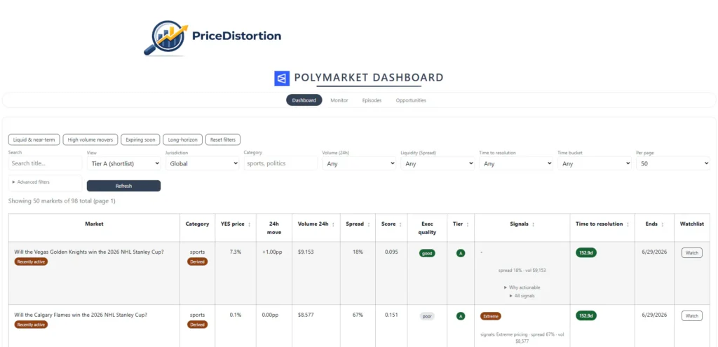 Finds mispriced opportunities on Polymarket and similar prediction markets through analytics and pattern recognition.